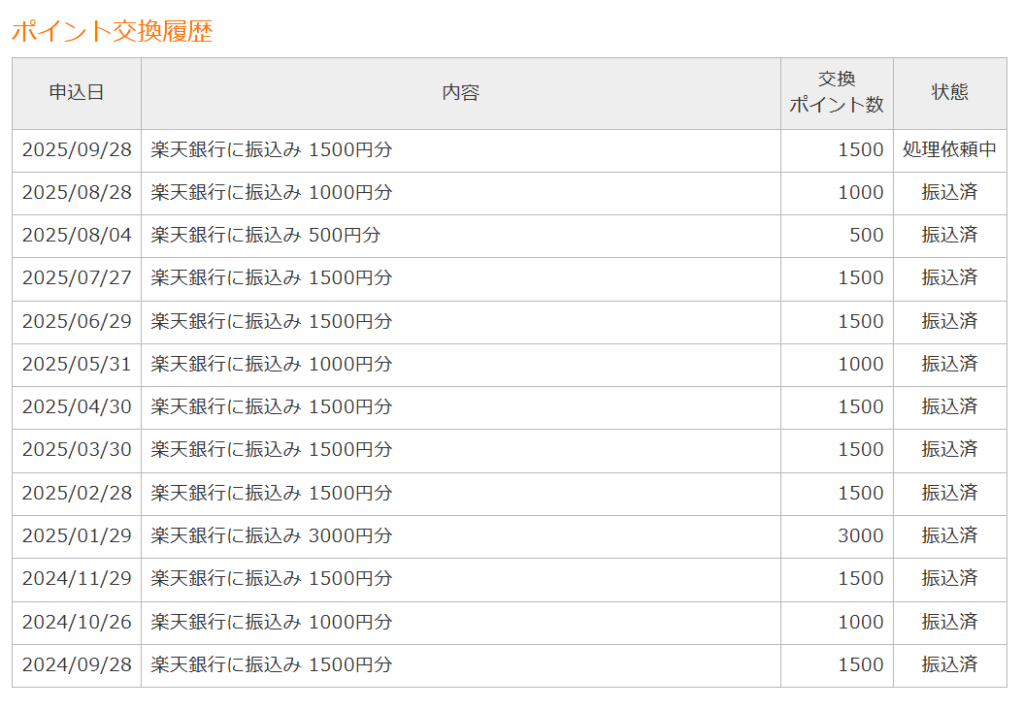 ポイントは1pt=1円で交換でき、ちょっとしたお小遣い稼ぎになります。